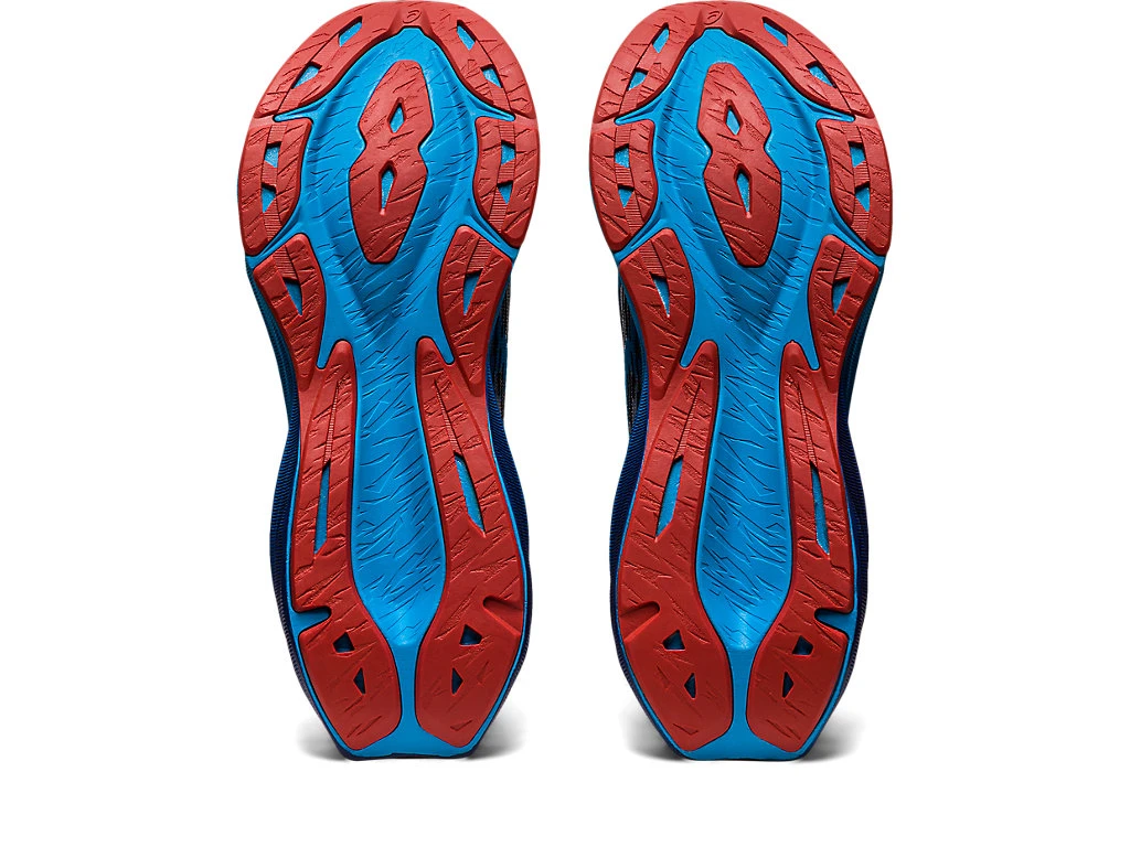 The NOVABLAST™ 3 running shoe draws inspiration from a geometric origami feature for the upper and midsole. After making the shoe approx. 30g lighter than the previous version, we also equipped this style with improved comfort. A tongue wing construction in the upper helps improve the fit while reducing tongue movement. This component is reinforced with a more supportive heel design to help guide the foot with more control through your gait cycle. Meanwhile, the midsole’s FF BLAST™ PLUS cushioning helps create a lighter and more responsive feel underfoot.